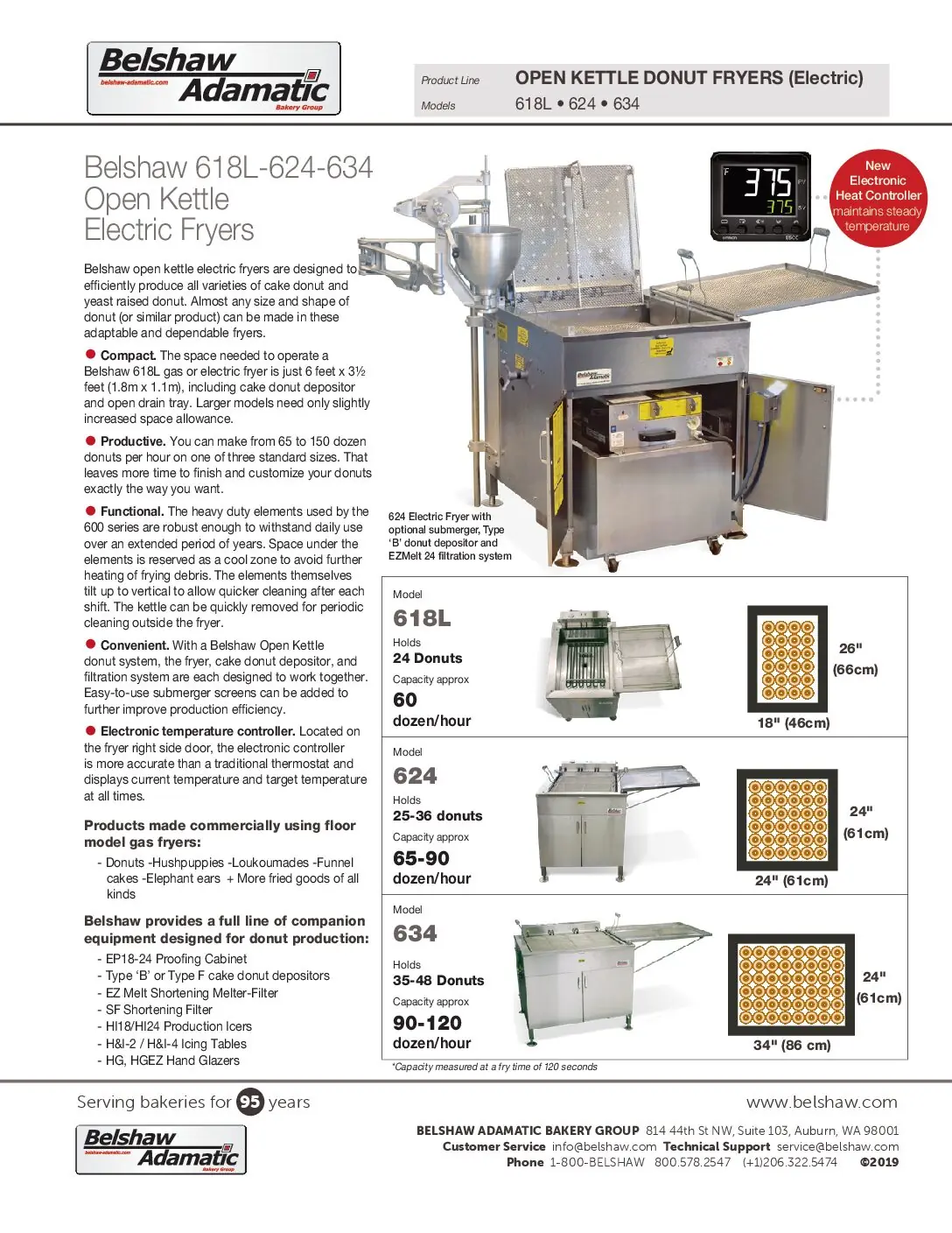 - Capacity 24 standard donuts, approximately 65-80 dozen donuts per hour