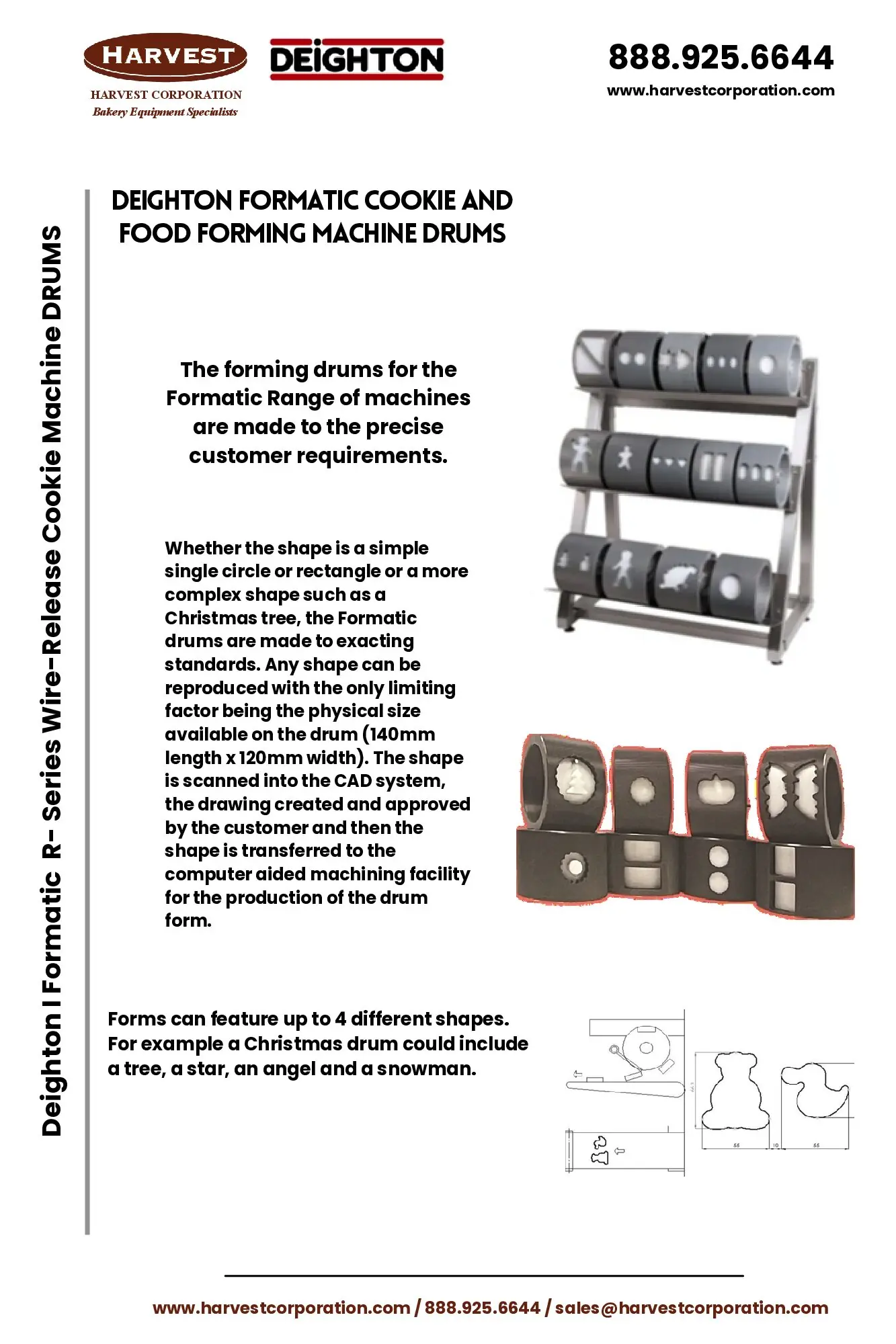 - Variety of Shapes The machine uses interchangeable drums or molds, allowing bakeries to produce many different cookie shapes or designs with one machine – almost any shape imaginable can be custom CNC on the drum. It is even possible to have multiple shapes on one drum.
