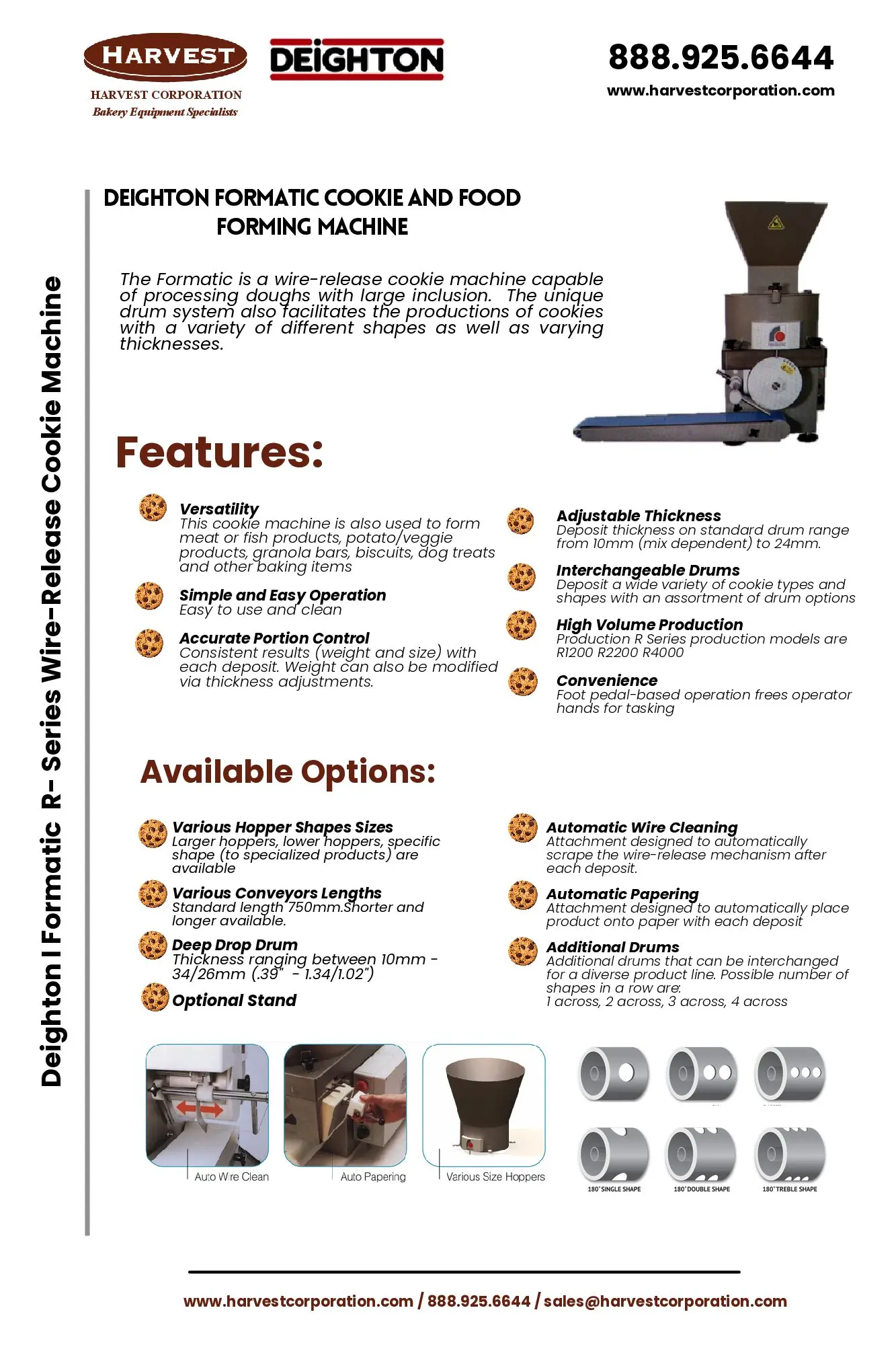 With its interchangeable drums this machine handles a wide variety of shapes, thicknesses and cookie types.