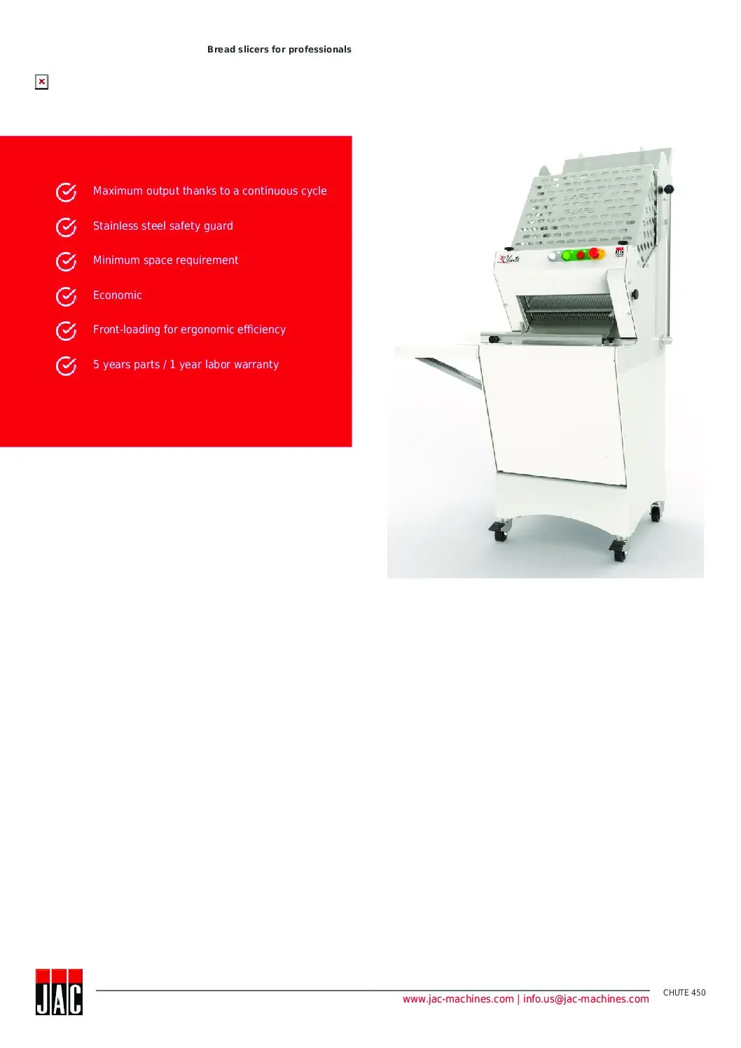 - Easy loading & changeover – Gravity-fed loaves, front rollers for smooth handling, and automatic changeover with built-in safety features.