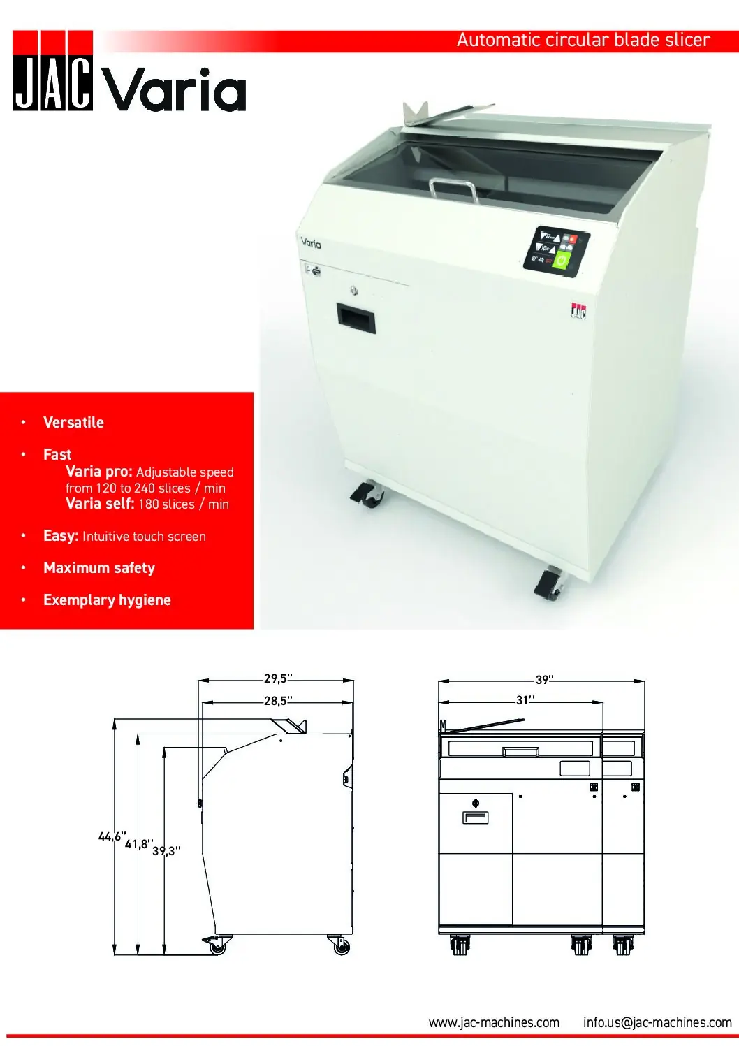 - Adjustable speed up to 240 slices/ minute: In order to reach the fastest possible speed for each bread type.