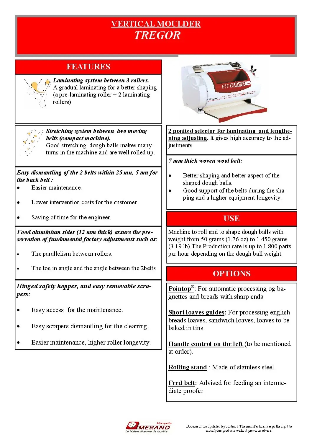 Machine to roll and to shape dough balls with weight from 50 grams (1.76 oz) to 1 450 grams (3.19 lb). The Production rate is up to 1 800 parts per hour depending on the dough ball weight.