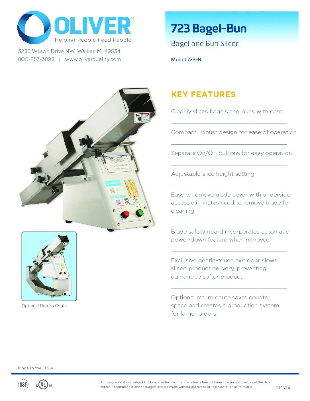 - Cleanly slices bagels and buns with adjustable slice height and gentle-touch exit door.