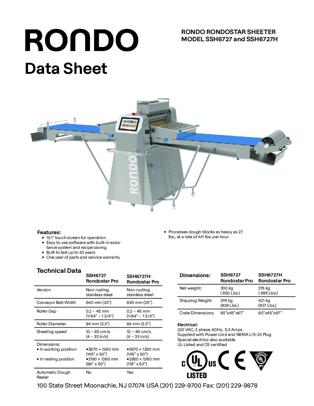 Rondo Rondostar 5000 Electronic Dough Sheeter