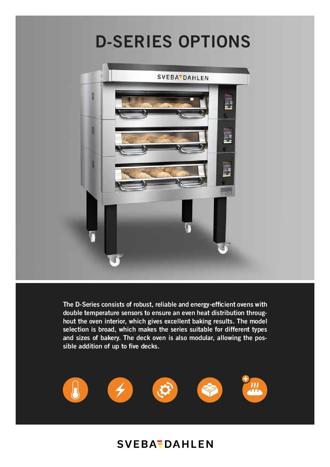 Elevate your confectionery and bakery creations with the Sveba Dahlen D-Series deck oven – a reliable, robust, and energy-efficient baking solution designed for optimal performance. Our deck ovens boast double temperature sensors, ensuring an even heat distribution throughout the interior for consistently excellent baking results.